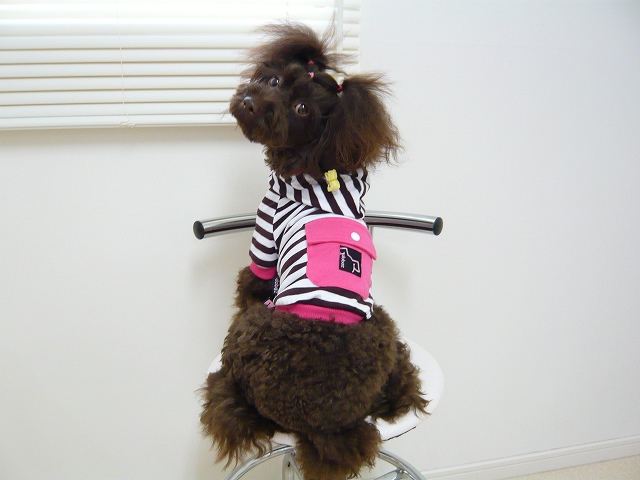 【しおん】にはあえてピッタリサイズで丈が短めのを着せて、足先やお尻などの毛がフワっとなっているところを強調してみました