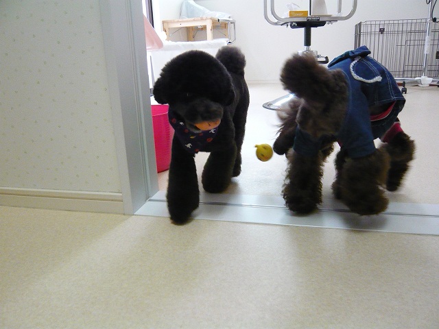 お迎えまでは、虎麦ちゃんの好きなボール投げをして遊びました