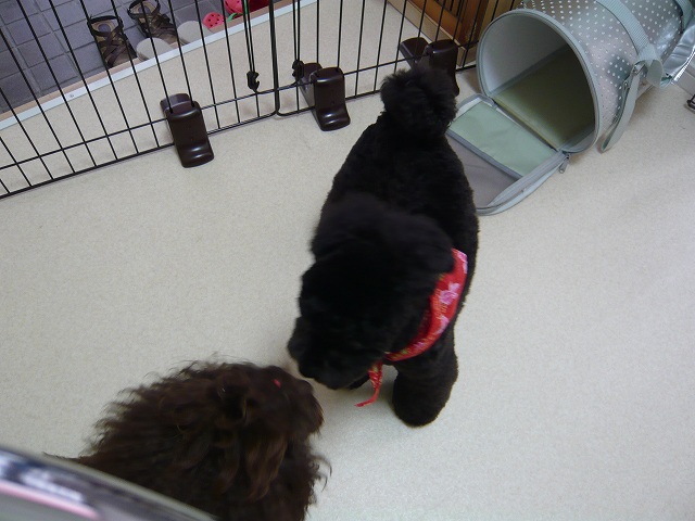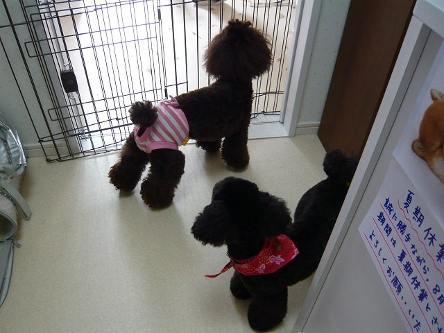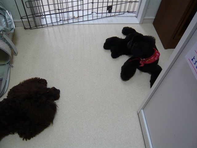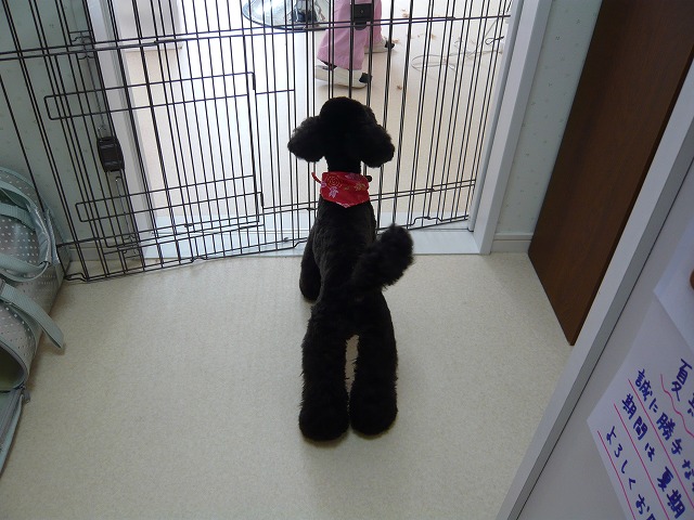 お迎えまでは時間があったので、次のワンちゃんをトリミングしている間は受付の方で【しおん】と待っていてもらいました