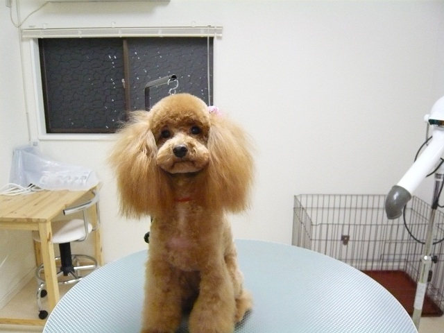 岡山市にあるアットホームなワンコのトリミングサロンです。 予約制となっておりますので、お気軽にお電話(086-221-8088)ください。看板犬しおん(ブラウンのトイプードル)と共にお待ちしております☆