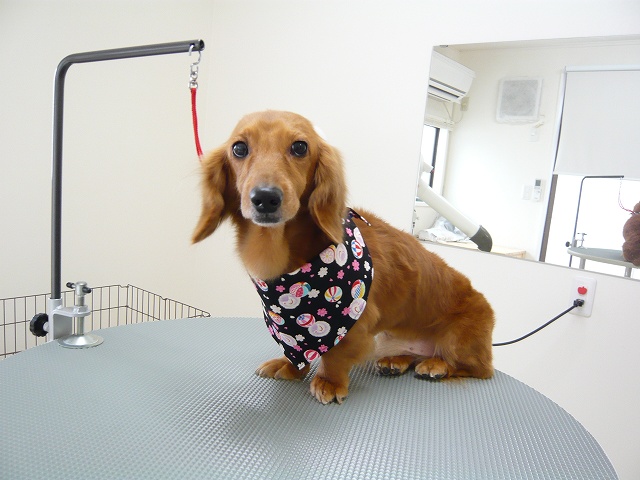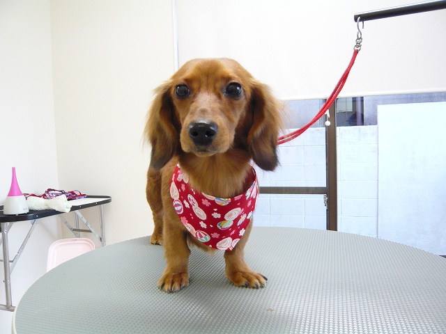 最初はトリミングテーブルに乗るのも怖がっていましたが、だんだん慣れてきました