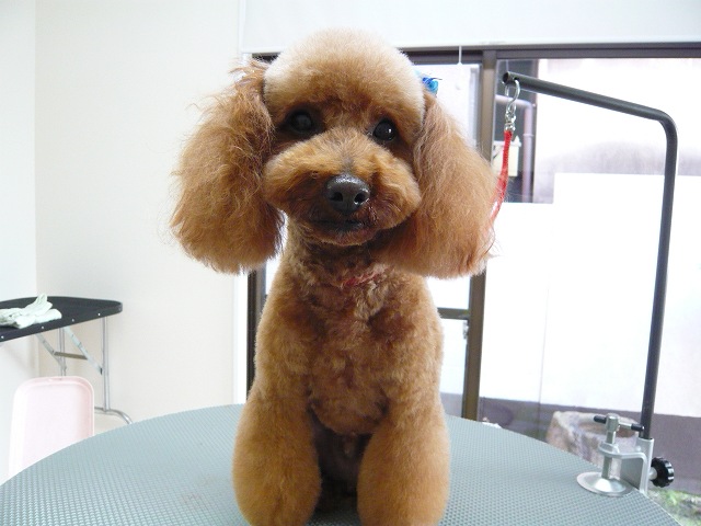 体は短めで、足はしずく型、お顔は耳が長めのテディベアカットです