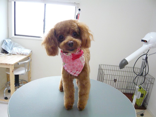 岡山市にあるアットホームなワンコのトリミングサロンです。 予約制となっておりますので、お気軽にお電話(086-221-8088)ください。看板犬しおん(ブラウンのトイプードル)と共にお待ちしております☆