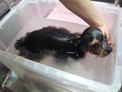 別府温泉天然湯の花エキスが入ったお風呂にも、お利口に入浴してくれましたよ