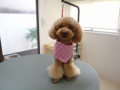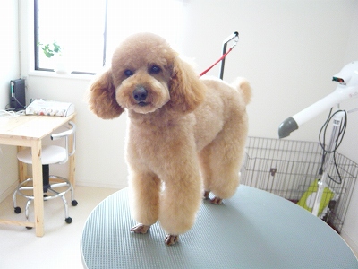 岡山市にあるアットホームなワンコのトリミングサロンです。 予約制となっておりますので、お気軽にお電話(086-221-8088)ください。看板犬しおん(ブラウンのトイプードル)と共にお待ちしております☆