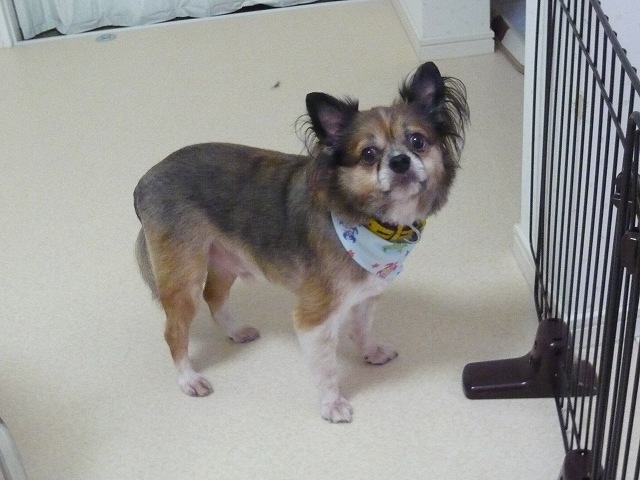 顔周りだけ残して、3mmバリカンでツルツルにしました