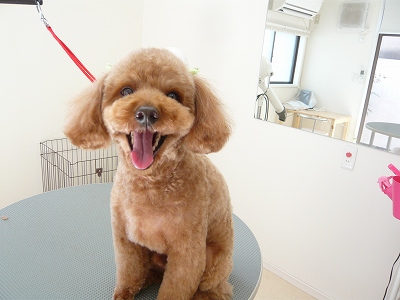 岡山市にあるアットホームなワンコのトリミングサロンです。                                          予約制となっておりますので、お気軽にお電話(086-221-8088)ください。看板犬しおん(ブラウンのトイプードル)と共にお待ちしております☆