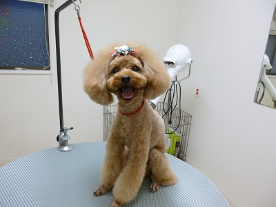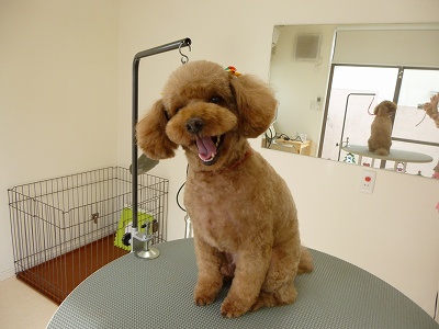 岡山市にあるアットホームなワンコのトリミングサロンです。 予約制となっておりますので、お気軽にお電話(086-221-8088)ください。看板犬しおん(ブラウンのトイプードル)と共にお待ちしております☆