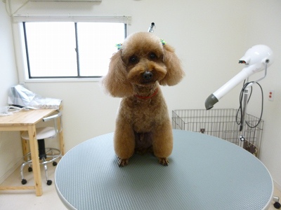 岡山市にあるアットホームなワンコのトリミングサロンです。 予約制となっておりますので、お気軽にお電話(086-221-8088)ください。看板犬しおん(ブラウンのトイプードル)と共にお待ちしております☆