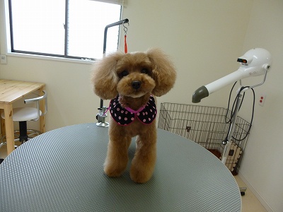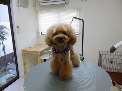 岡山市にあるアットホームなワンコのトリミングサロンです。 予約制となっておりますので、お気軽にお電話(086-221-8088)ください。看板犬しおん(ブラウンのトイプードル)と共にお待ちしております☆