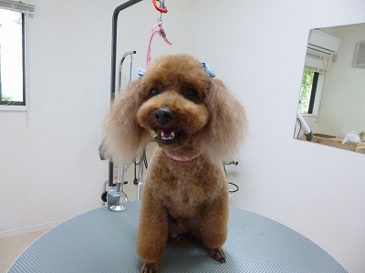 岡山市にあるアットホームなワンコのトリミングサロンです。                                          予約制となっておりますので、お気軽にお電話(086-221-8088)ください。看板犬しおん(ブラウンのトイプードル)と共にお待ちしております☆