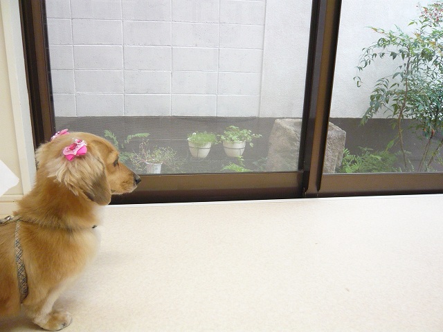 お迎えまでは外を見て待っていました。