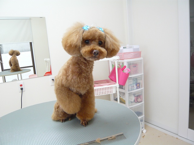 岡山市にあるアットホームなワンコのトリミングサロンです。 予約制となっておりますので、お気軽にお電話(086-221-8088)ください。看板犬しおん(ブラウンのトイプードル)と共にお待ちしております☆