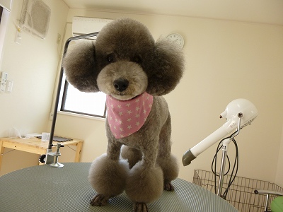 岡山市にあるアットホームなワンコのトリミングサロンです。 予約制となっておりますので、お気軽にお電話(086-221-8088)ください。看板犬しおん(ブラウンのトイプードル)と共にお待ちしております☆