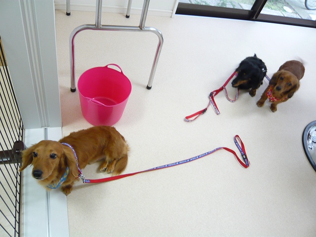 そろそろお迎えなので、みんなリード付けて待ってようね~